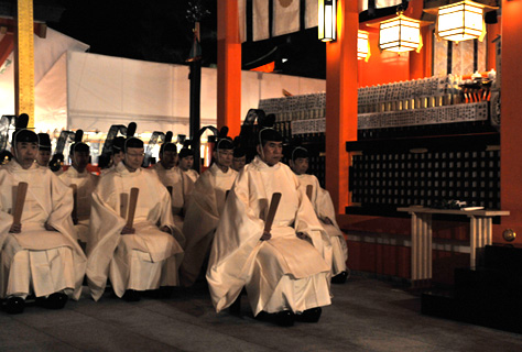 これに引き続き稲荷大神のご守護により無事一年間を過ごし得たことに感謝する除夜祭が執り行われ、やがて年が改まります。