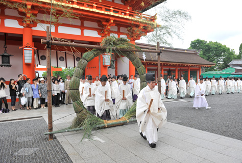 古くより「夏越の祓」と称せられ、元旦以来知らず知らずのうちに犯しているかもしれない罪・穢れを祓いて形代を河海に流します。