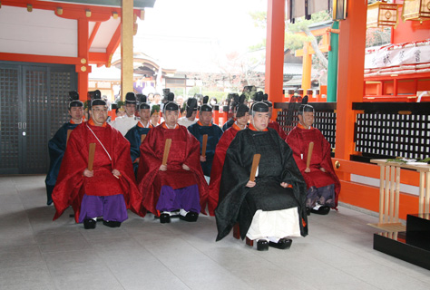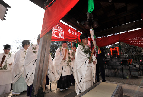 新年を寿ぎ国家の安泰と一年の無事平穏を祈るお祭で、祭典が終わると宮司以下の神職は境内にある各摂末社を巡拝する。
