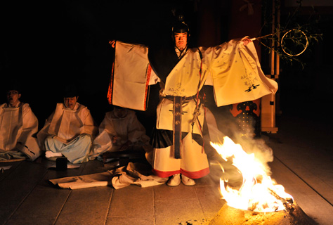火焚祭の日の夕刻18:00から、「御神楽」が大前に奉奏されます。