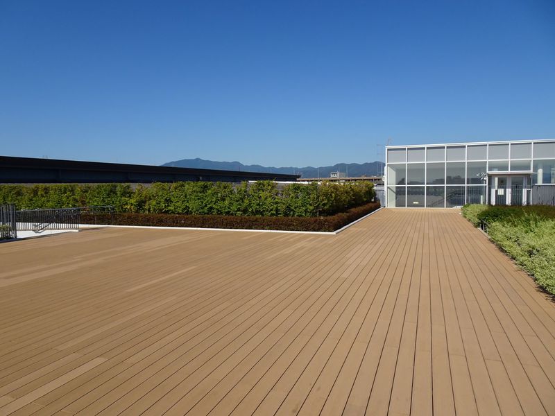 3Fの南側にあるスカイテラスは、花や緑がいっぱいの空間です。 広々としていて外の空気を吸うのに寄ってみては(*^^*)
