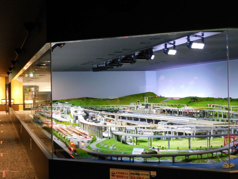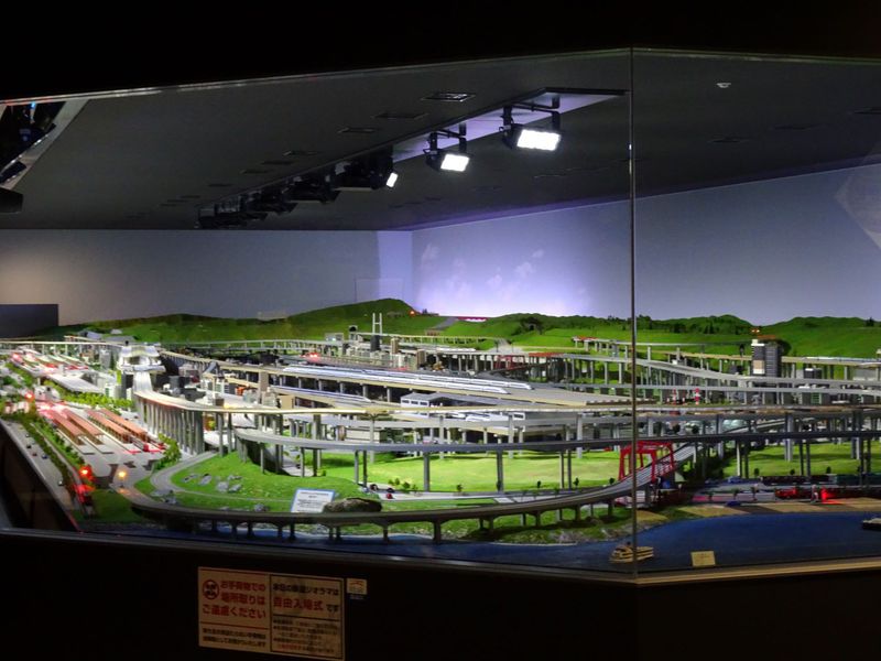 実物車両の約1/80スケールの鉄道模型を係員が運転する巨大なジオラマは幅約30m・奥行約10mもあります。