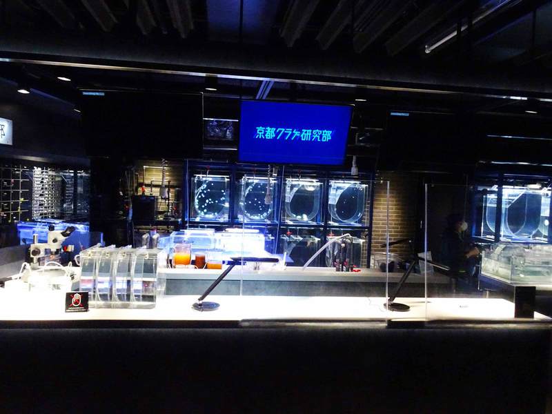 クラゲの繁殖、研究などの作業が見れるオープンスペース「京都クラゲ研究部」があります。