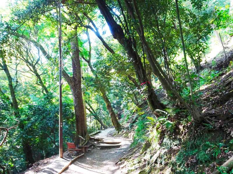 途中にベンチで休憩できるので、森林浴を楽しみながらのんびりと登って行きましょう。