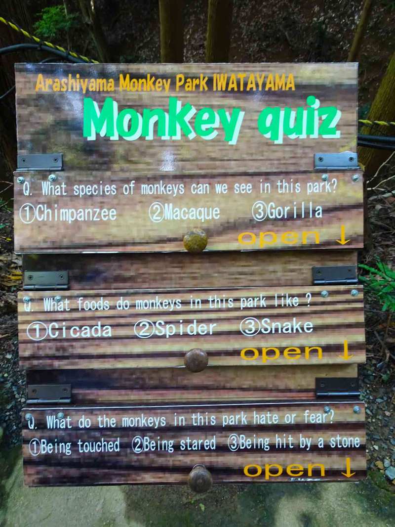山道にはおサルさんについてのクイズがあります。
