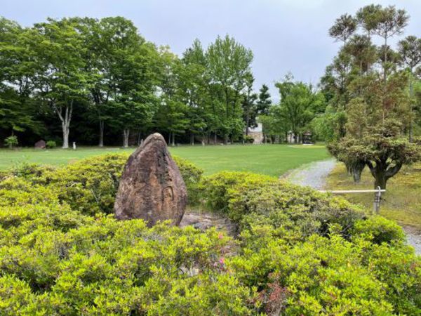 西半分は和風で2棟の建物(和楽庵・香雲亭)が建てられています。東半分は洋風で芝生が敷き詰められています。