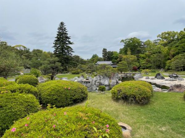 かつて後水尾天皇の接遇の為に設けられた行幸御殿が園池の南側に建てられ、庭園の四方は回廊と建物で囲まれた状態にありました。