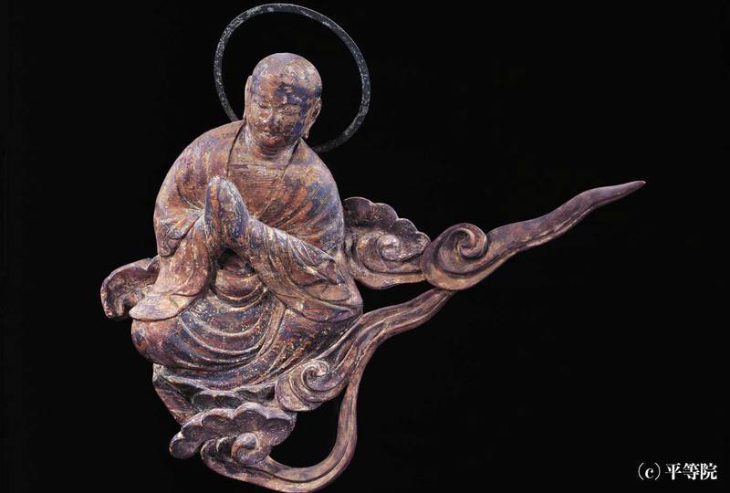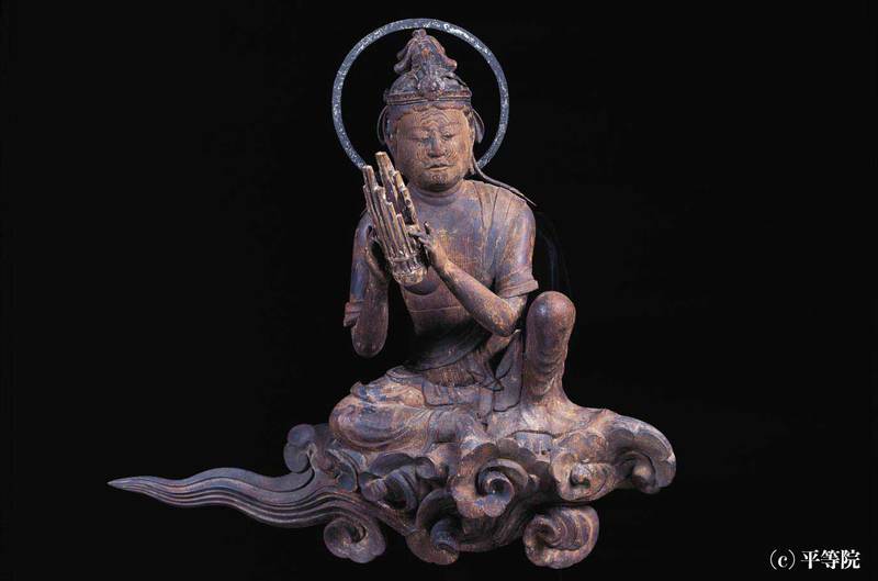 定朝工房で1053年に制作されたもので、各像はいずれも輪光を負い、飛雲上に乗ってそれぞれ変化にとんだ姿勢をとっています。