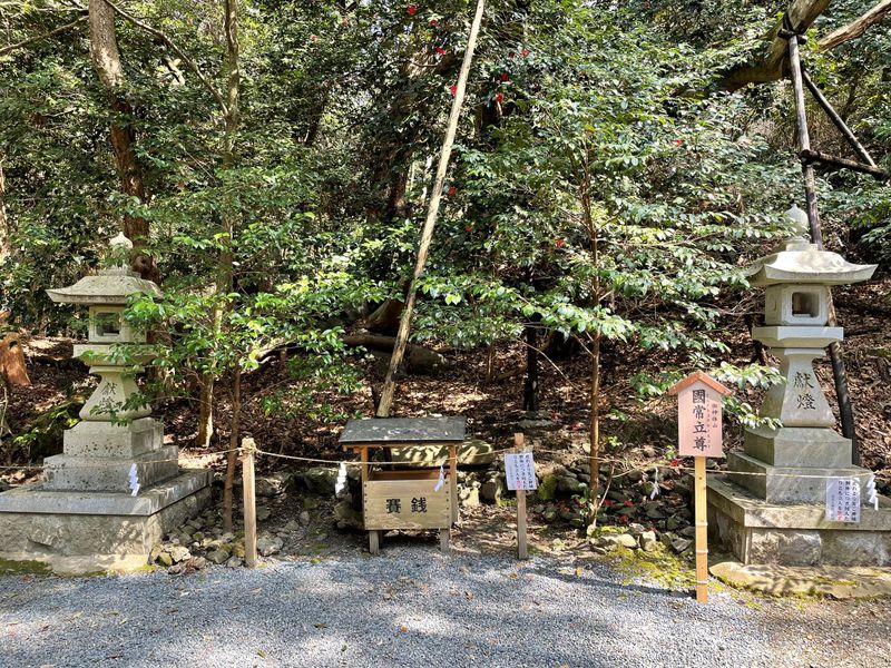御神体である御影山には社務所で入山許可を得ないと入れないエリアがあります。山の上にある磐座、国常立尊(クニノトコタチノミコト)を祀っている場所へ行くためには社務所にて名簿に名前を書き、タスキを借りて入山しましょう。
