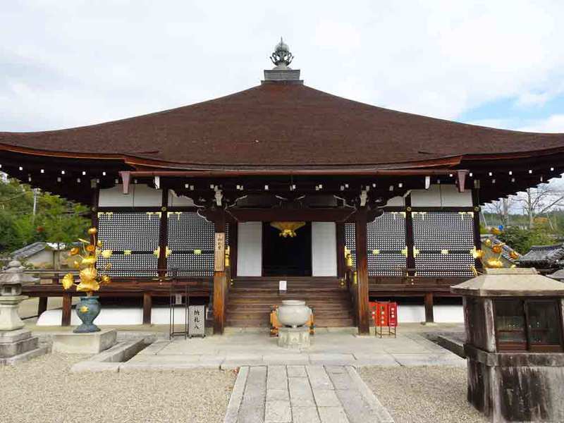 仁和寺の本尊である阿弥陀三尊を安置する御堂で、現在の金堂は1613年に造営された内裏紫宸殿を、1624~44年に移築してきたものです。