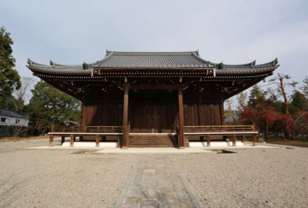 現在の御影堂は、1596~1615年に造営の内裏清涼殿の一部を賜って1624~44年に再建されたもので、蔀戸(しとみど)の金具なども清涼殿のものが利用されています。