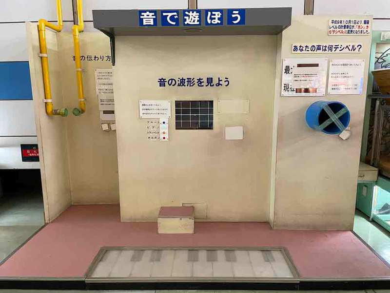この大声測定器では、足で踏むオルガン、トランペットなどの色々な音の波形を見ることができます。