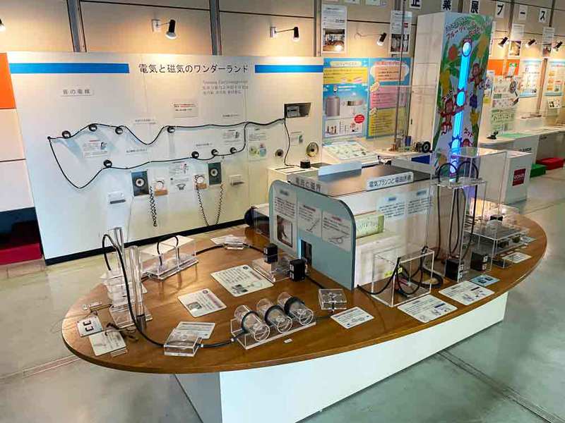 コイルの近くで磁石を回して電気を作る「発電機」、空き缶やお鍋をスピーカーがわりにして音が聞ける「音の電線」、光から電気を作る太陽光電池など、さまざまな実験が楽しめます。