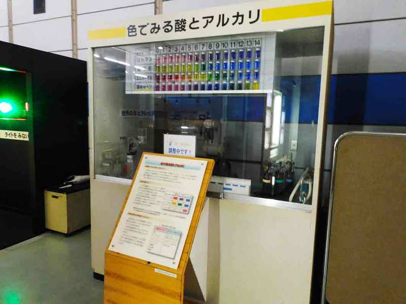 酸とアルカリのコーナーでは、水溶液が酸性かアルカリ性かを調べる実験をあなたの指示でロボットが行ってくれます。