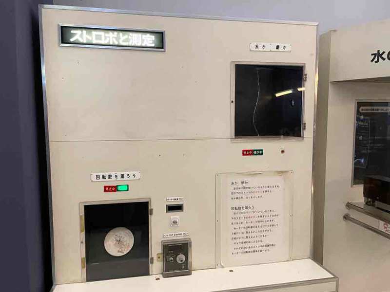 この装置でストロボの点滅を止めたり、点滅の周期を変えたりすることで見られる興味深い現象を確認できるので、是非体験をしに行ってみてください。
