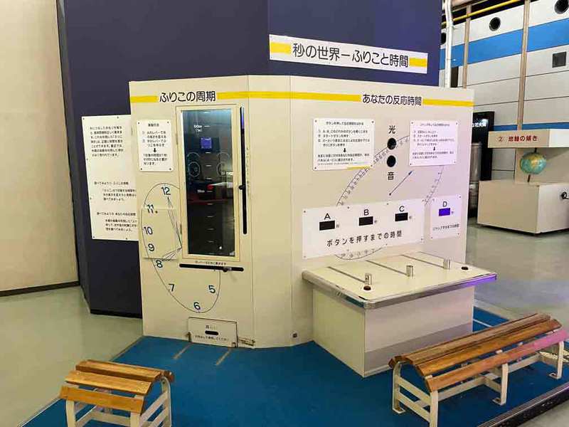 振り子時計にも利用されている振り子の周期や、ちょっとした仕掛けが施された振り子による砂模様、物の落ち方や落ちる速度が体験できるコーナーです。