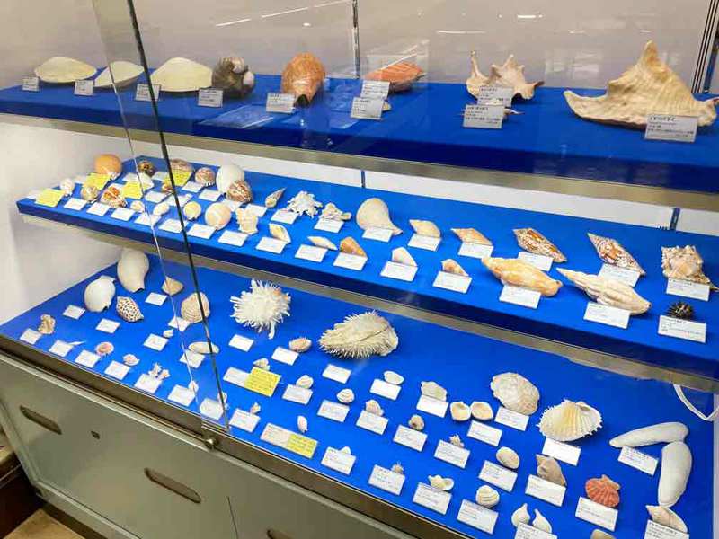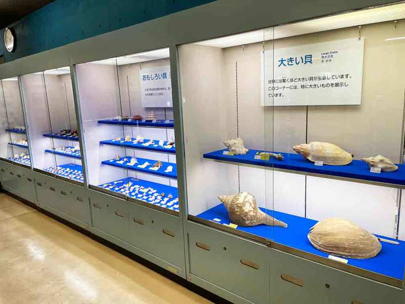珍しい貝や美しい貝、大きい貝、陸にすむ貝などが展示されています。