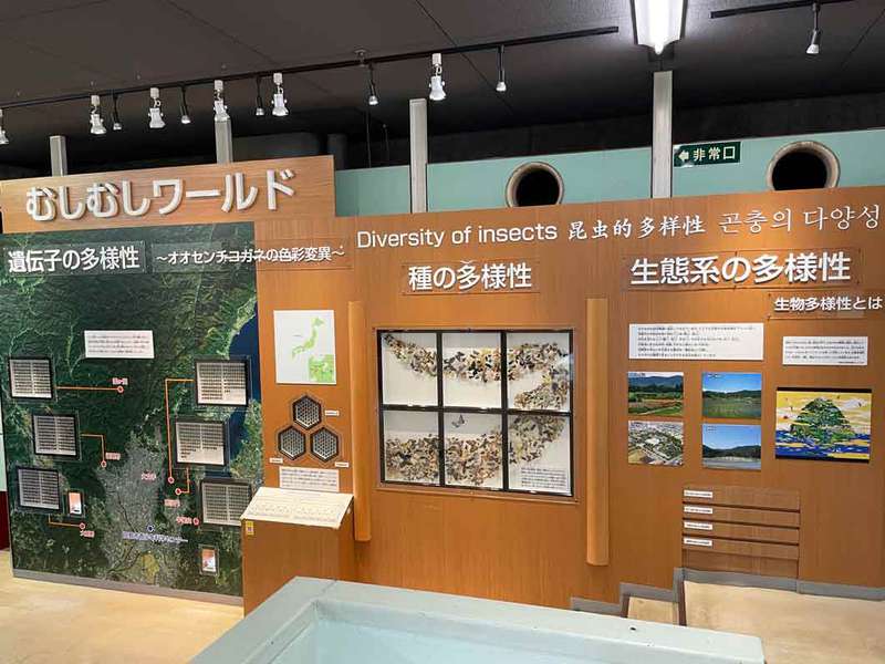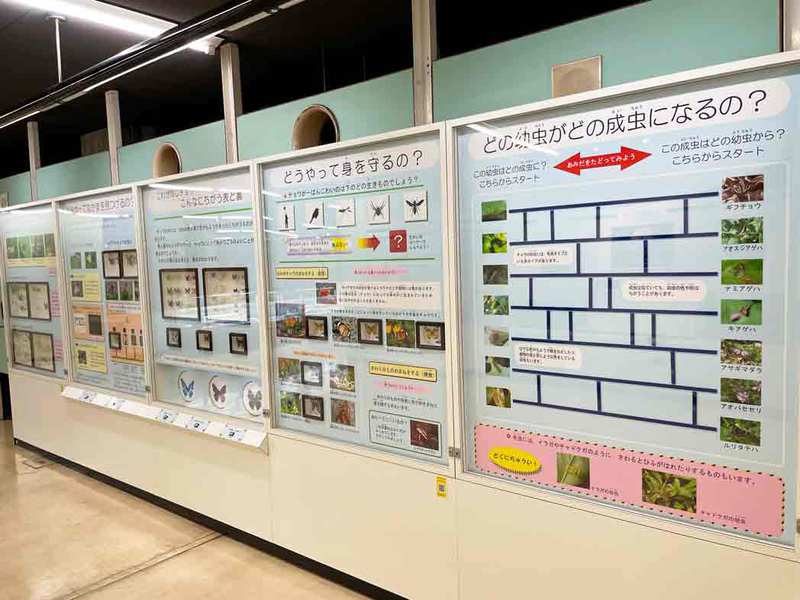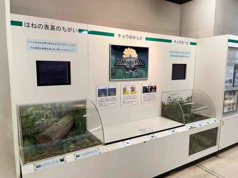 チョウのコーナーではパネルや映像、模型、ジオラマなどが使われていて楽しく学べるような工夫もされています。