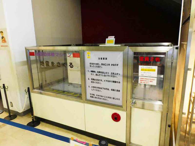 この機械では過去に日本で実際に起こった地震の揺れが体験できます。(前後・左右・上下の3方向に揺れます。ただし震度6と7は危険なためディスプレイによるグラフ表示のみとなります)