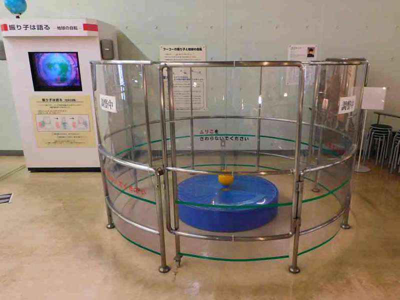 自転運動する物体の上で、長い弦の振り子を振らせると、次第に振動方向が変化していくことから、地球が自転をしていることが示されました。