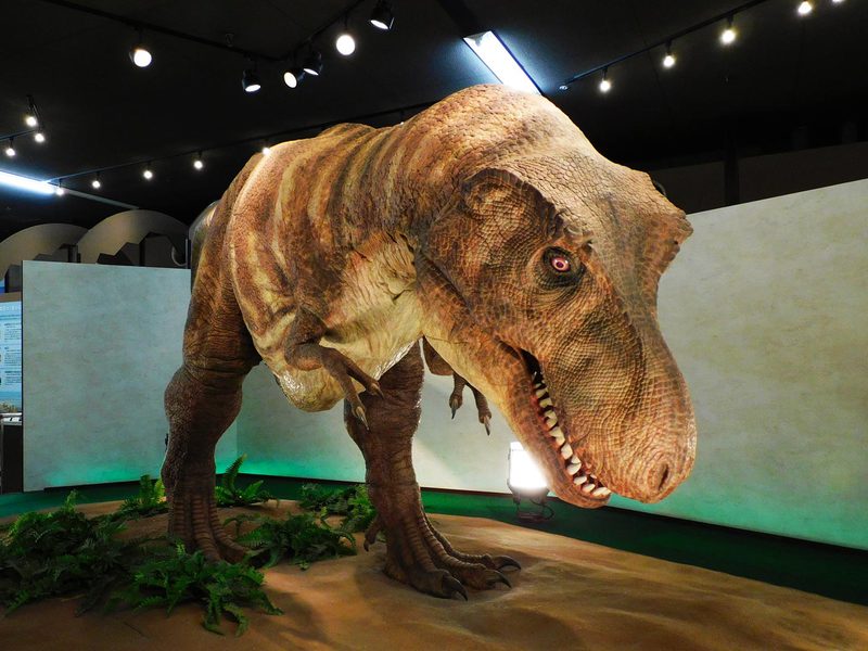 皮膚や筋肉がリアルに再現され、ロボット技術が利用された迫力ある動きをする上に音声による解説装置もあり、楽しみながら恐竜の生態や当時の環境について学ぶことができます(^_^)