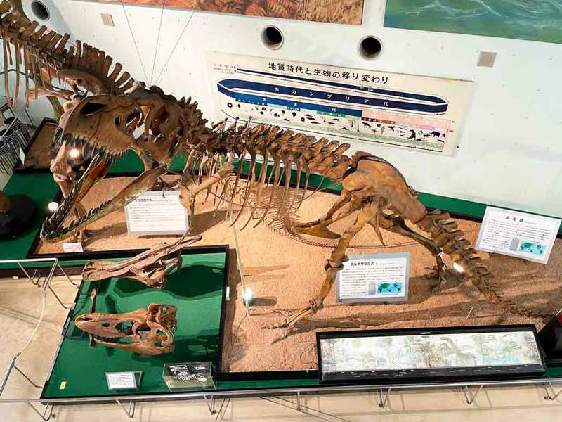 白亜紀後期に生きていた大型肉食恐竜、タルボサウルスの化石の復元模型です。