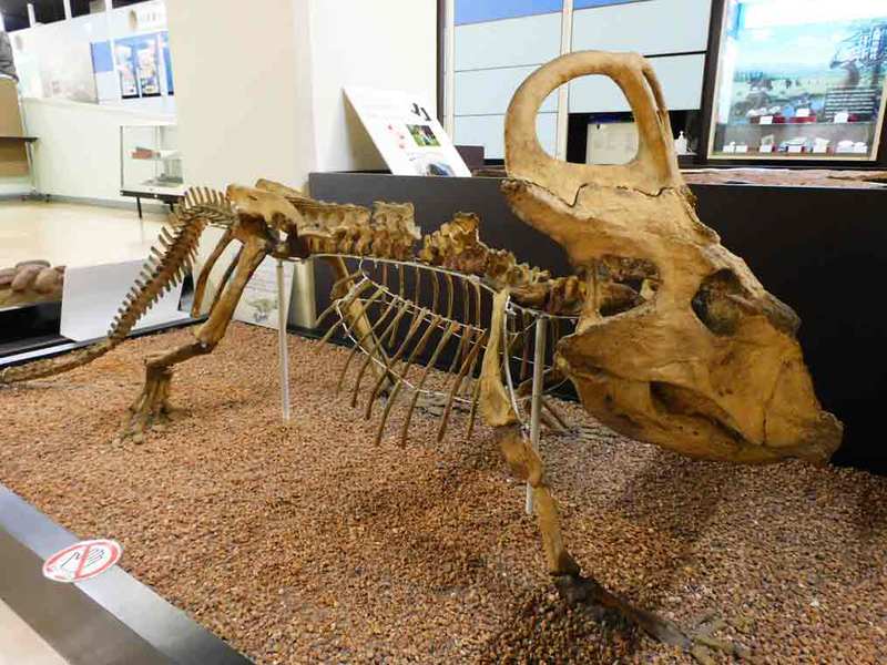 トリケラトプスなどと同じ角竜の一種ですが角はほとんど目立たず、体長約2mと角竜としては小型で、この大きさでも大人です。