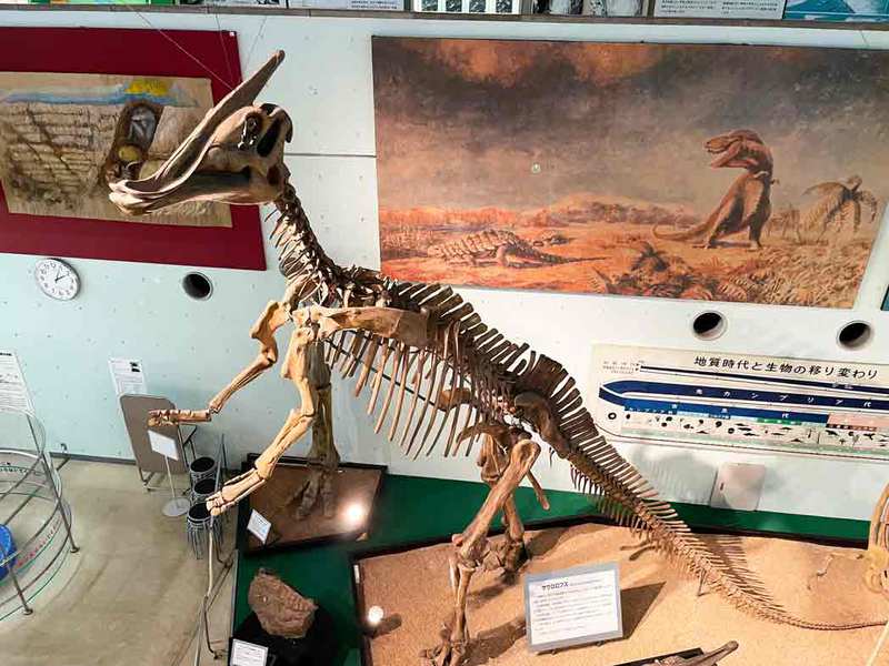 大型の草食恐竜サウロロフスの化石が復元された模型です。