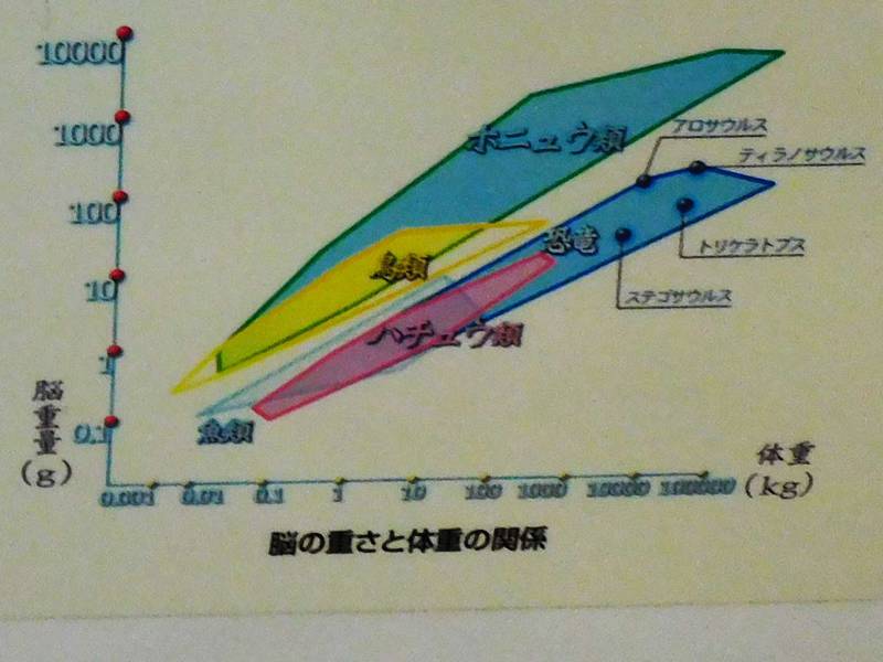 また、恐竜の中でもティラノサウルスやアロサウルスなどの肉食恐竜と、トリケラトプスやステゴサウルスなどの植物食の恐竜を比べると、同じ体重でも肉食恐竜の方が大きな脳を持っていることから、肉食恐竜の方が知能が高かったようです。