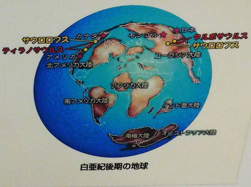 被子植物は栄養価が高く消化しやすいため恐竜は様々に進化し、海によって分けられた大陸には、地域ごとに特徴的な恐竜が出現していました。