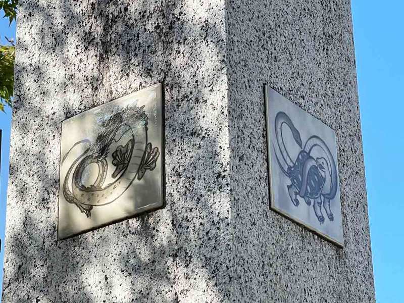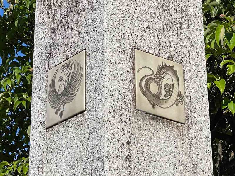 四神門は晴明神社の塀重門で、石柱の上には、四神(東の青龍・南の朱雀・西の白虎・北の玄武)が掲げられています。