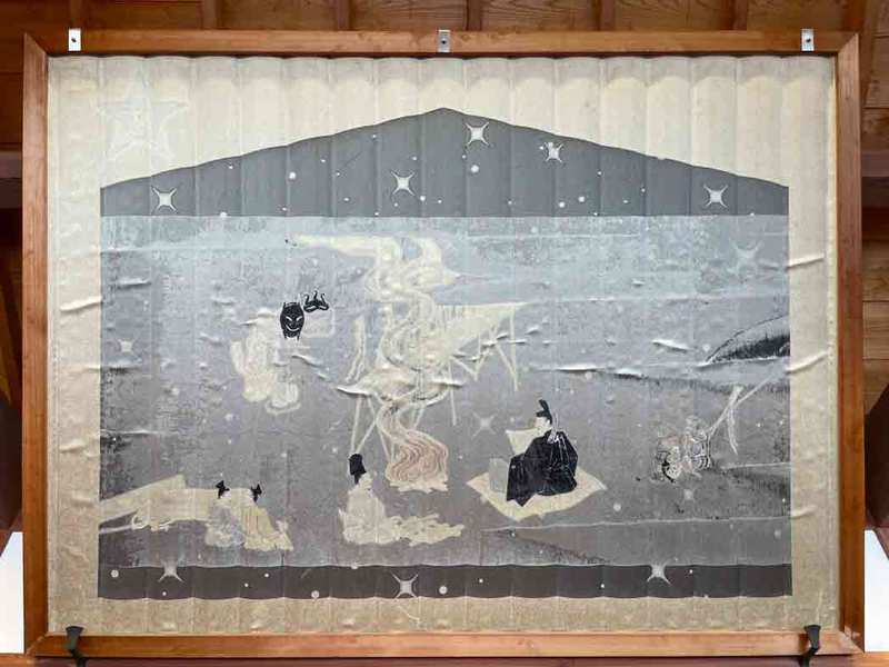 また、清浄華院(京都市上京区)が所蔵している「泣不動縁起絵巻」の中の、安倍晴明が登場する一場面を、西陣織の技術で織り込まれた大きな絵馬「泣不動縁起絵巻 織りつづれ絵馬」が掲げられています。