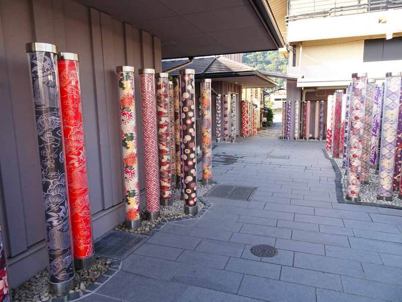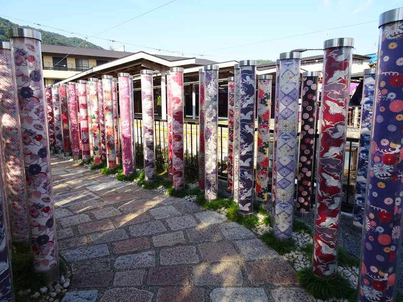 小径や公園、売店、足湯、キモノフォレストが配置され、駅の守り神として「龍の池」も設置されています。