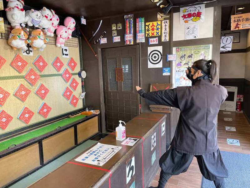忍者の武器である手裏剣を的に向かって投げられる実践道場で、伊賀流手裏剣打ちにチャレンジできます。