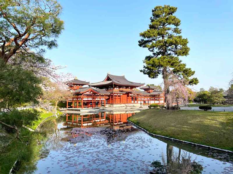 平等院庭園は、鳳凰堂やそれを取り囲む阿字池、また宇治川や対岸の山々が一体となり形成され、当時の貴族たちが求めた極楽浄土の光景が再現されています。